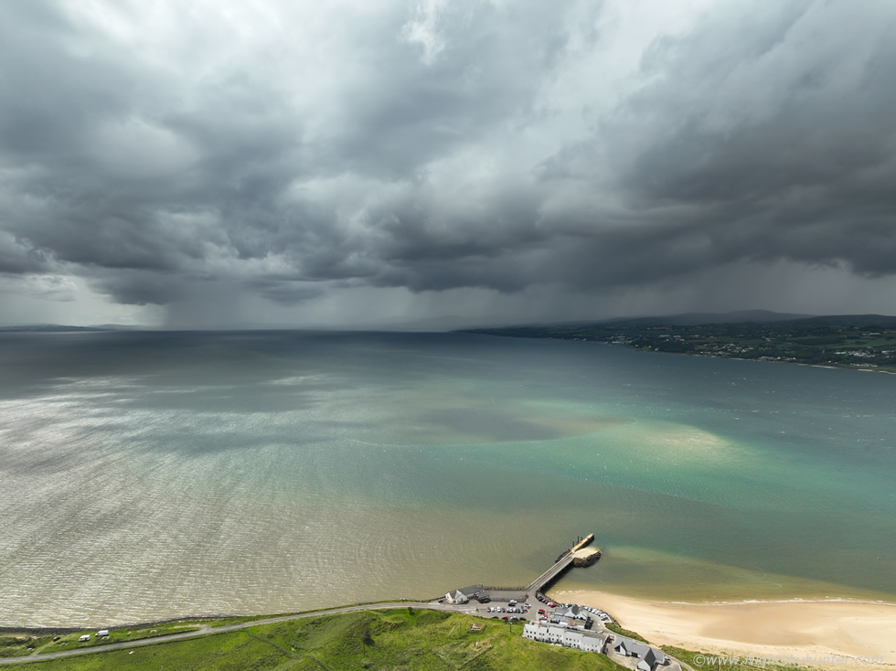 That day Roisin, Rhua and I went to the coast for a day out, I had studied the models first and although I considered inland to be the best place for a storm, especially in the E, I did notice some models showing a few cells along the coast, so maybe we would see something while we where there. We walked along Magilligan beach when I noticed convection over Donegal slowly moving in our direction, I said to Roisin those showers look to have a weak gust front forming and that we could end up getting soaked in a while, we were standing under lovely warm sunshine and Roisin suggested we turned back as she didn't want to get rained on so we returned to the car. Then the cell moved closer, the sky began to cloud cover and the leading edge of the cell turned mean with a long staggered line of beefy dark clouds marking the leading edge, it began to get my attention so I made my way back down to the beach again and got the drone in the air.