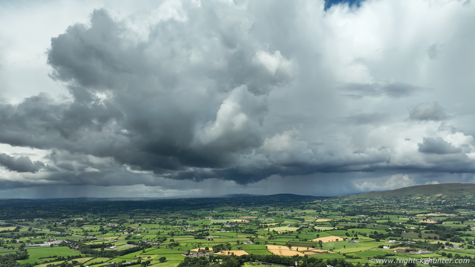 We drove to Slemish, the storm was spent and slowing cleared and we were back to blue skies and warm sunshine. Convection developed but I could tell it was nothing like before, the trough had passed through and I suspected the best instability had moved through with the storm. Still we waited for several hours enjoying the beautiful view, going for walks and watching every convective cloud in sight until 16.00 when we decided to move on. We both really enjoyed the scenery and the storm, it was a good day out. I wonder will this be my only storm encounter of the Summer?, I hope not, even though I enjoyed the experience I still hadn't got the structure scenes I wanted so the thirst for more storms continues, maybe nature will throw us a wonderful surprise before the season ends. Thanks very much for reading my personal rant, especially if you have made it this far.