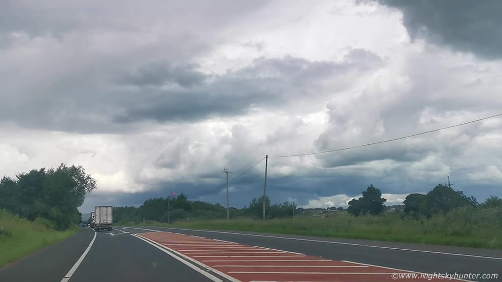 Parting image of the E moving storm. I got back in the car and asked Roisin to hit it and we surged E through the bending tight turns of the dangerous country roads between there and Portglenone.