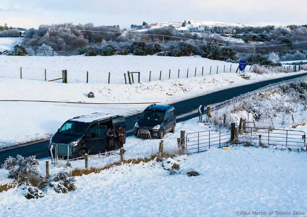 While this cold spell was going on I had been in regular touch with Veronica Cunningham from the BBC who was filming Chronicles Of The Sperrins. If you have been reading my recent website reports or follow me on social media then you will know that I was being featured on the show along with others. The idea was to film people with different hobbies or jobs in the Sperrins through all four seasons. Veronica and her crew had spent the entire year filming and I had already met them during Spring, Summer and Autumn and we had a great success with epic auroras, NLCs and a rare comet, however we needed something else to finish the Winter episode with me. Originally we were going to do a moonlit ending at Lough Fea under the stars but for various reasons it kept getting put off, then Veronica contacted me about the snow saying why don't we take advantage of this.