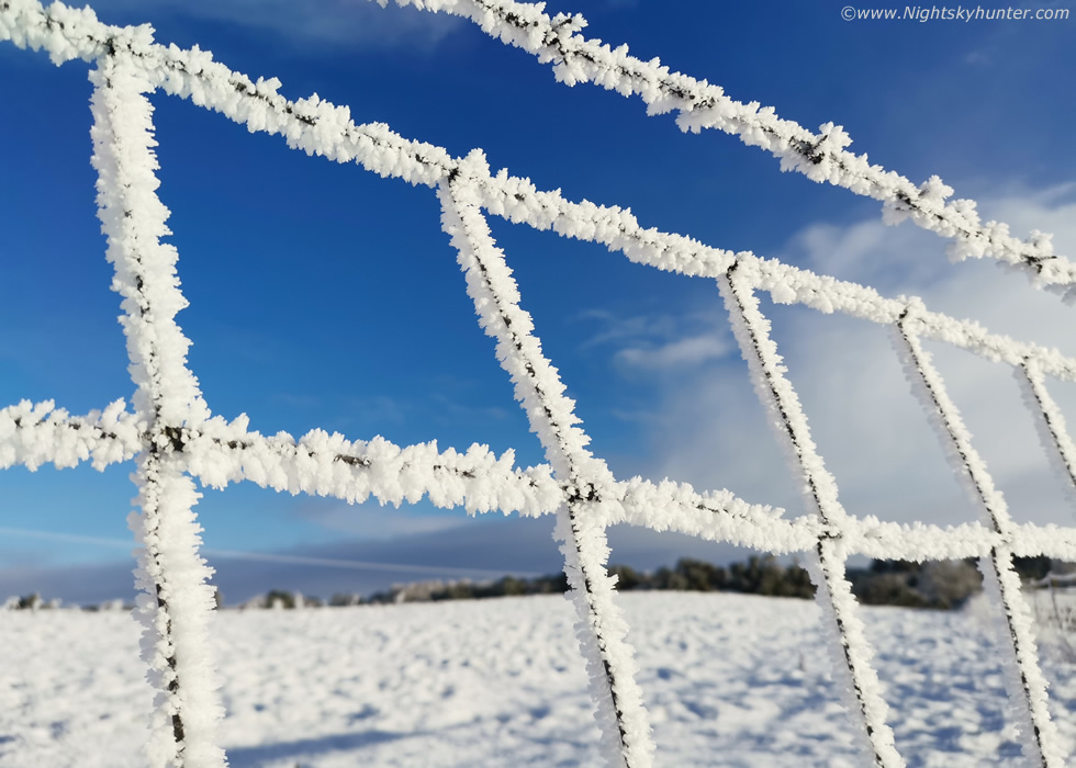 The fence was covered in thick hoar frost, a stunning sight, now the low sun was shinning and I had blue skies, this was the kind of scene I was after, I honestly never thought I would see frost this thick today, this was beyond my expectations.