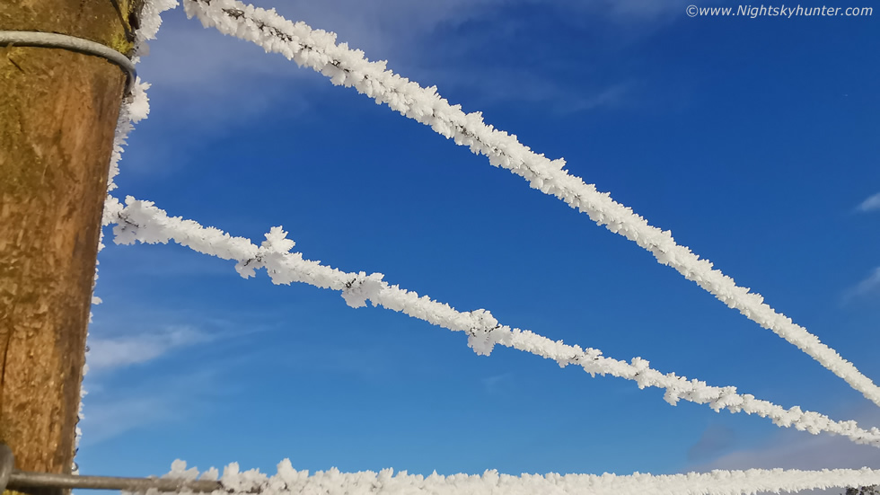 She and the crew were filming Winter scenes at Gortin Glen Forest on the 9th and I thought it was great synchronicity as I had a feeling the Omagh and Gortin areas could be great for scenes, in fact, I had a gut feeling about going there, but hadn't committed yet. Then I got a message from Paul Martin saying he was spending the day snow chasing in the same area and suggested we should meet up, all of this was a sign from the Universe that I should go to Gortin. It all made sense, Paul and I would get a Winter chase together and I would meet Veronica later to wrap up the show, it was meant to be. I was game, the weather was ticking all the boxes, to be honest even though Paul and I would be happy enough with any snow it was the hoar frost that lured us out most of all, however it was a complete gamble if any would form or not, it would be a case of just going out looking for it and hoping to get lucky. Before going to bed Paul informed me there was freezing fog in Omagh, this was a good sign yet again.