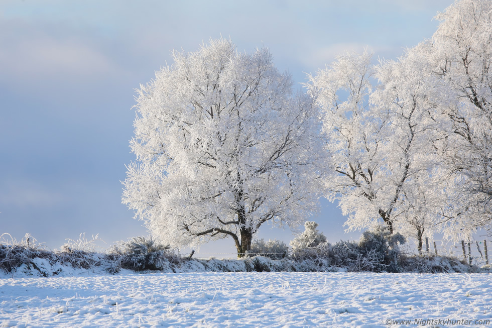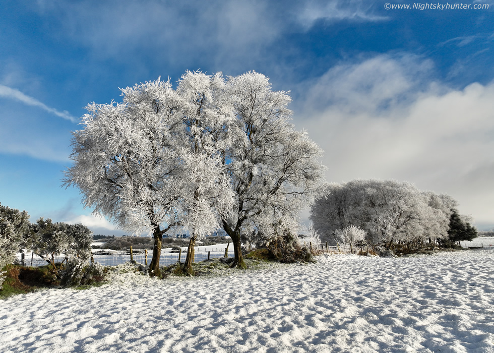 Amazing scenes in every direction, I resisted the urge to just pull over and start shooting, I knew from my last experience hunting hoar frost scenes that it's not that easy from a photography perspective. You could jump out snapping in all directions, take 400 images, and not have a single good one you would be happy with. The reason is the landscape was cluttered with trees and bushes, visually fantastic but on camera it can be very difficult to make sense of it all. In this situation it's important to stay calm and wait for that special moment, that landscape or group of trees which you encounter by accident and which draws you in like a magnet. I continued driving then met Paul at a filling station outside Omagh, he was buzzing just as much as I was, but where to begin?, Paul suggested checking out Loughmacrory first which I thought was a very good idea.