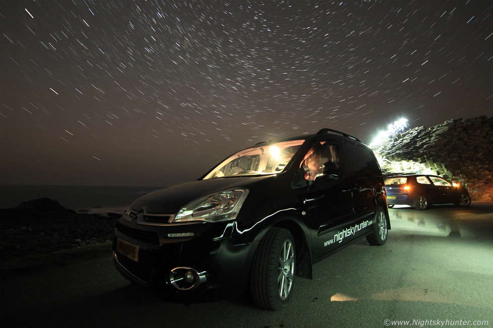 There was a continued chance of further aurora activity the following night with G1 storming likely in the wake of the CME and even though I didn't feel there would be much happening I decided I would go anyway despite the lack of sleep from the night before. My Mum had never seen the aurora before so I thought this would be a good time to change that so we headed straight to the coast and this time back to the Giant's Causeway. There was a very faint aurora showing on camera however while I waited I began a star trail around the van but it was cut short (three times) by other cars and people with lights, I chatted with a few people and enjoyed watching the sky visually, there were even a few beams on show however I didn't do any more photography because of people walking over the rocks with torches, I was relieved a major aurora wasn't happening for the images would have been ruined by such behavior, next time if the skies are clear I hope to be shooting a display inland or at a new location for this reason.