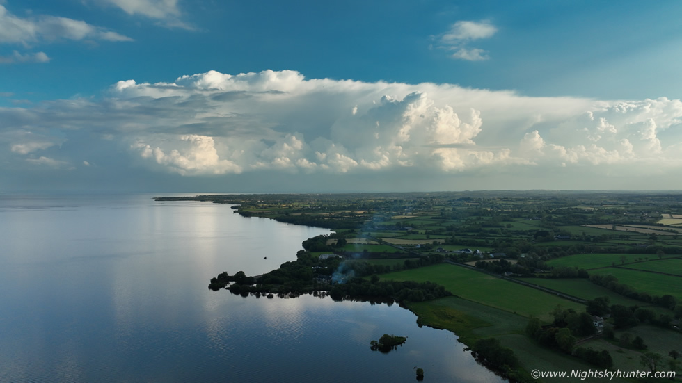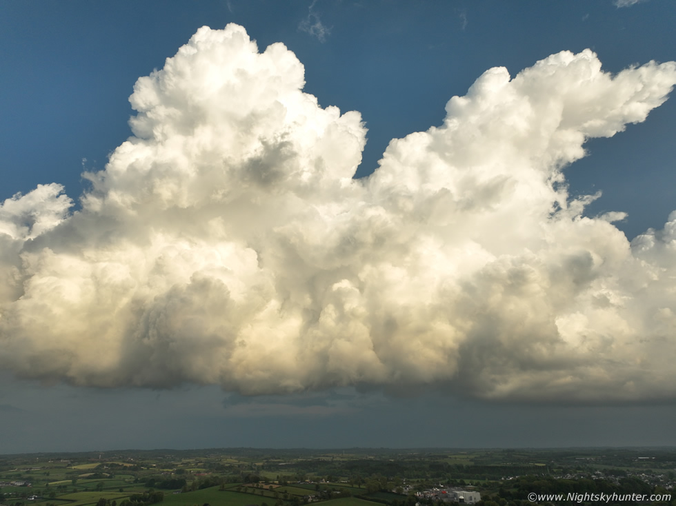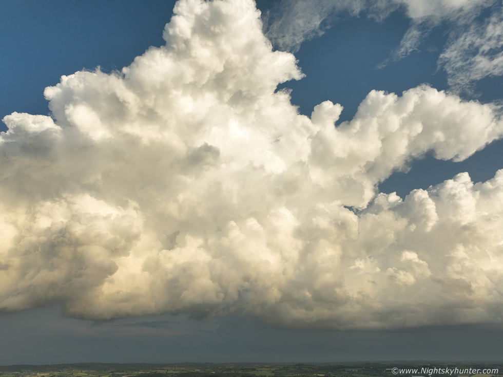 I was back in Cookstown bringing in the camera gear then sat down to a quick salad, it must have been after 20.00, Roisin wanted to go out for a walk so we would be leaving soon. I opened the back door, looked outside and was shocked to see dramatic looking towers close by to the E. Actually they formed a line extending from SE near the lough, passed here and on to Dungannon. It was really difficult to do justice to these as they looked so much better in real life than on the drone, I called Roisin out to look and she was impressed. It was the textures in late evening light, the vivid whites, shades, the yellowing along the bases, the cauliflower knuckles on the convection all in high contrast, I love scenes like this, maybe I was getting the photogenic skies I wanted now.